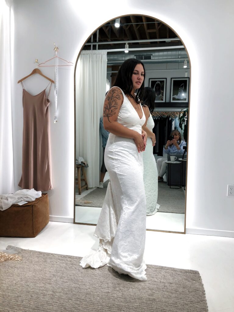My momma and I got to go, and we were the only appointment in the building since it was around lunch time! It was such an amazing experience, and I’m so glad I documented it! When you’re working with GLL, you send an email with 5 dresses you’re hoping to try on! Your sales person tells you the story of why GLL was created, and honestly I soaked that in and didn’t vlog since it’s really apart of the experience overall!