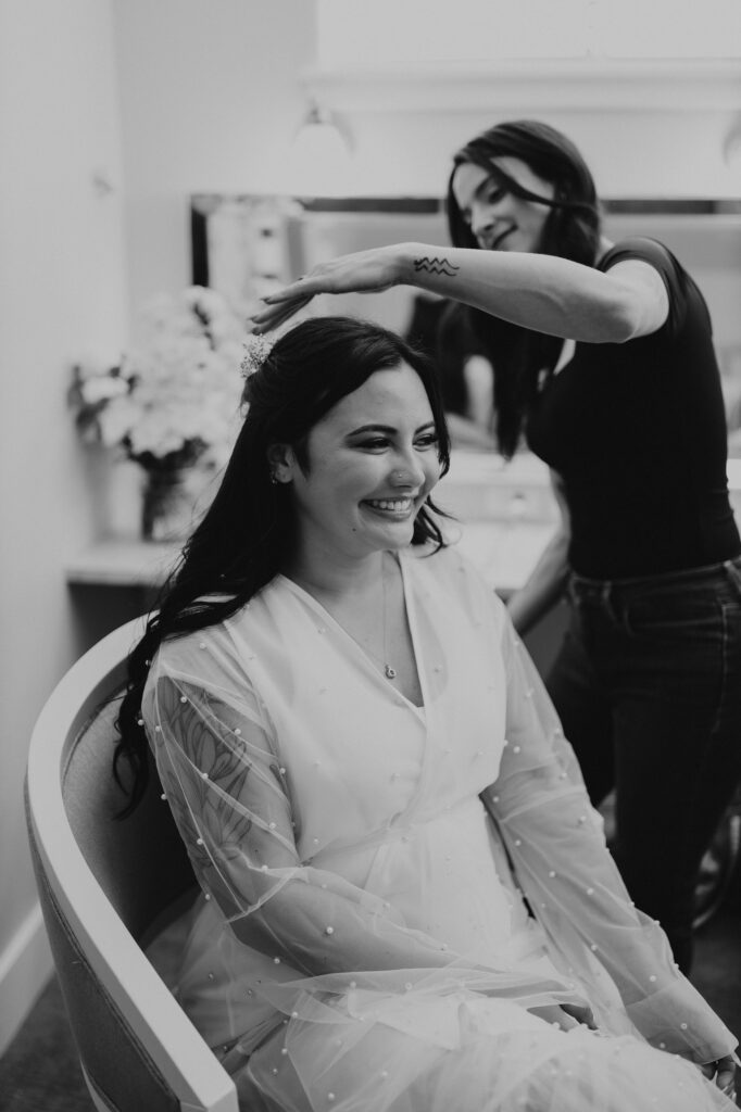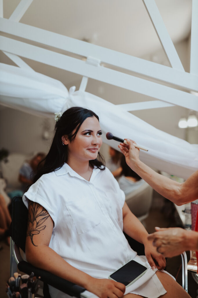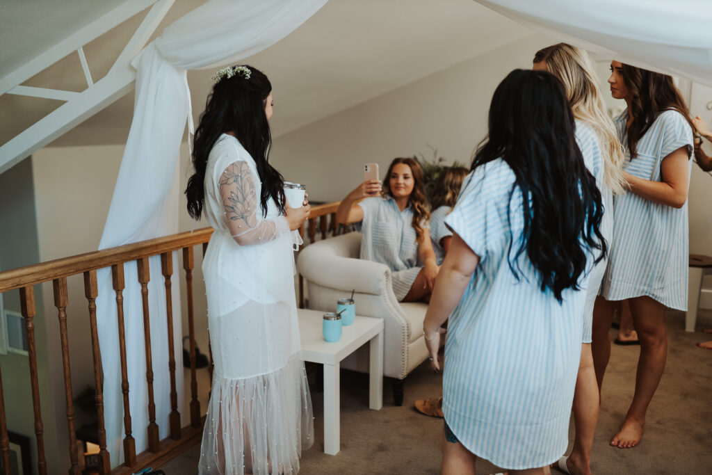 The Morning Of: The girls all god ready at Palisade River Ranch, while the boys were setting up, drinking beers, and as usual being reckless. At Palisade River Ranch, they have whatās called āThe Apartmentā on their Airbnb / website, and that unit has the girls getting ready suite. We spent the morning drinking mimosas, eating snacks, having my brother run in & out to get whatever we needed, and getting hair & makeup done. I linked vendors above, but again, Liz & Ashley did an amazing job! We love them, and all the girls looked great.